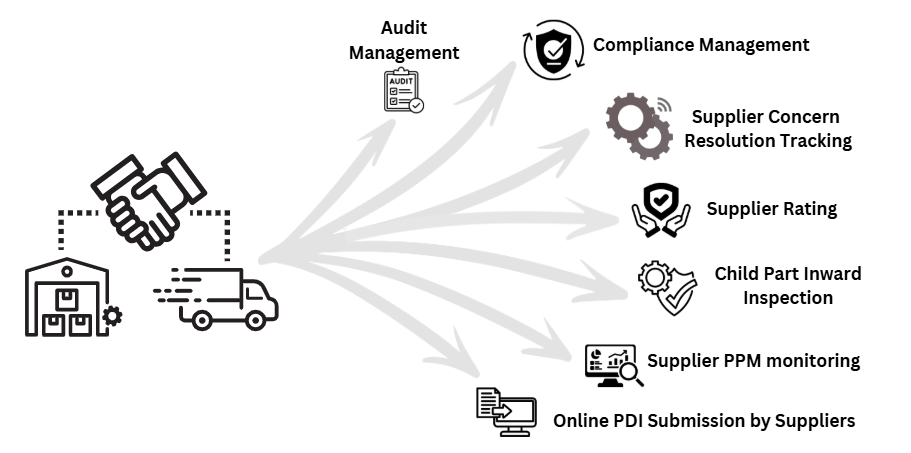 A comprehensive, paperless, and cloud-based Supplier Quality Assurance (SQA) solution hosted on cloud. Eliminate information silos and gain real-time visibility across your entire supply chain. Deploy an automated structured framework that correlates multiple functions to track non-conformities and assess supplier performance.